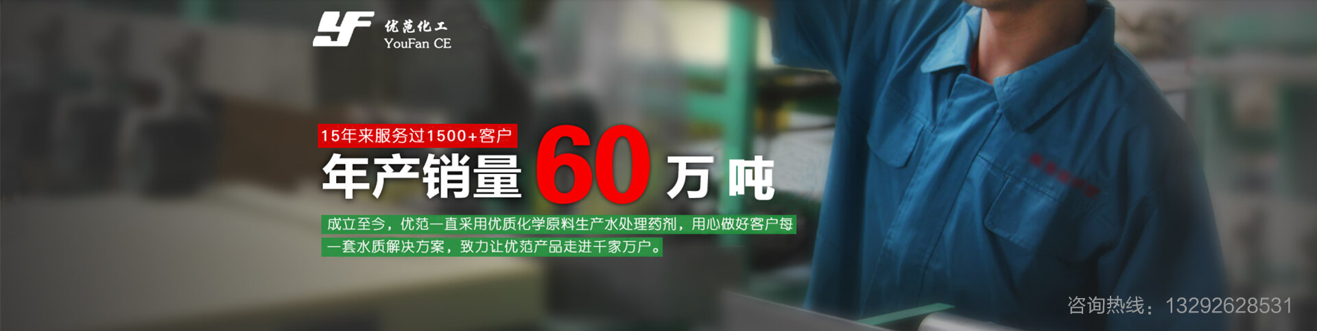 始于2005年,資質(zhì)健全,諸多榮譽,15年專業(yè)水處理藥劑研發(fā)生產(chǎn)商。專注于對阻垢劑、殺菌滅藻劑、反滲透膜阻垢劑、速效除垢劑、清灰劑、污水處理藥劑等多種水處理藥劑的科研、設(shè)計、生產(chǎn)、銷售及售后服務(wù)。擁有現(xiàn)代化生產(chǎn)車間及高精度的水質(zhì)檢測設(shè)備,鑄造年產(chǎn)量60萬噸的超強生產(chǎn)力,可提供藥劑種類超過200種。從產(chǎn)品到售后,優(yōu)范環(huán)保科技提供專業(yè)一站式服務(wù),創(chuàng)百萬用戶認可的好品質(zhì)!